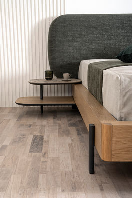 Το Cute ξεχωρίζει για τον καθαρό και λιτό σχεδιασμό του, με στρογγυλεμένες γραμμές που χαρίζουν απαλότητα και κομψότητα. Η βάση από ξύλο ρουστίκ συνδυάζεται αρμονικά με τα μεταλλικά πόδια, δημιουργώντας ένα σταθερό και σύγχρονο σύνολο. Τα ενσωματωμένα κομοδίνα με επιλογή κεραμικής επιφάνειας ολοκληρώνουν το design, προσφέροντας πρακτικότητα, μινιμαλισμό και διακριτική πολυτέλεια. Ένα μοντέλο που ενώνει φυσικά υλικά με μοντέρνα αισθητική, ιδανικό για όσους αναζητούν minimal αλλά ζεστή ατμόσφαιρα στην κρεβατοκάμαρα.